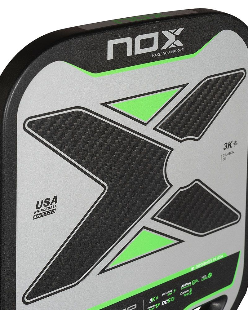 Progettata con materiali di alta qualità e tecnologia all'avanguardia, la Nox Pickleball Pro Shield garantisce prestazioni solide e costanti fin dal primo colpo. Il suo design si adatta a qualsiasi stile di gioco, assicurando scambi fluidi, colpi sicuri e un'esperienza Premium in ogni partita.