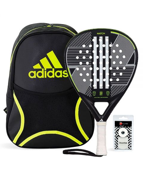 Acquista ora il tuo Pack Adidas Match 3.3 + Zaino Adidas. La Adidas Match 3.3 Black Lime combina prestazioni, design e tecnologia a un prezzo accessibile. Se stai iniziando nel mondo del padel, questo pack sarà il tuo miglior alleato. Inizia a giocare come un professionista fin dal primo colpo!