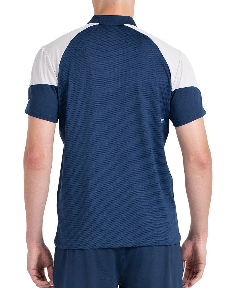 Realizzato con un tessuto elastico composto dal 92% di poliestere e dall'8% di elastan, questo polo garantisce una mobilità eccezionale e una leggerezza incomparabile. Il suo design include un colletto a coste bicolore con bottoni, dettagli a contrasto sulle spalle e i distintivi della linea.