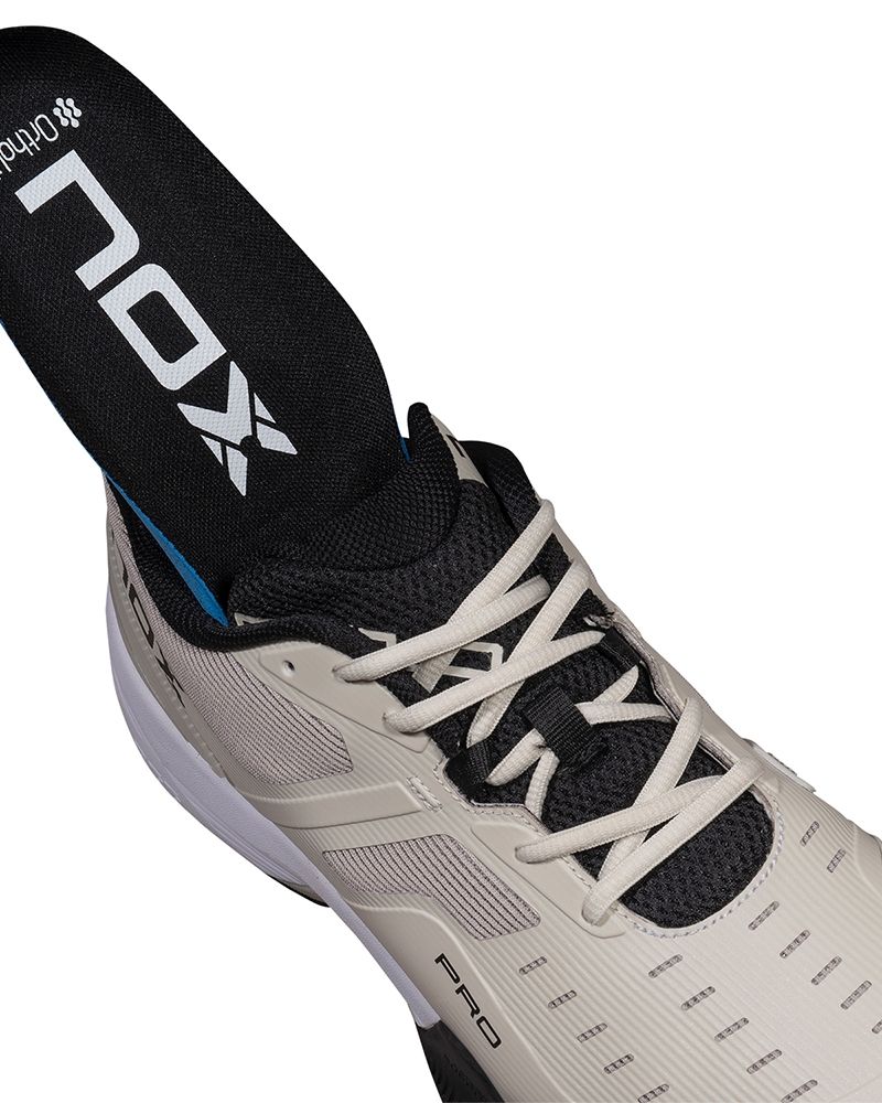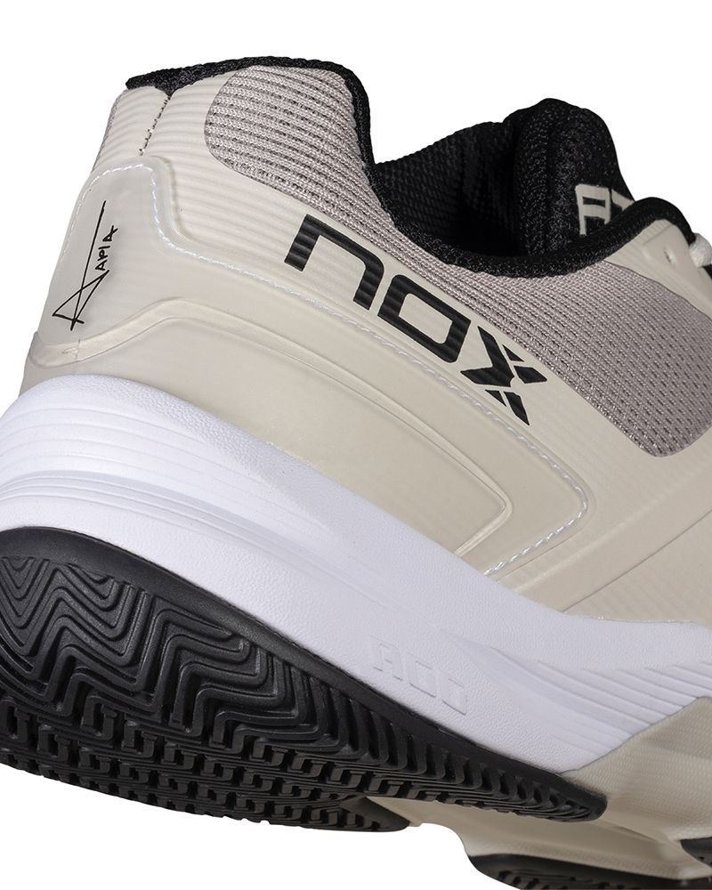 Le Nox At10 Pro Grigio Scuro per uomo sono ideali per chi cerca una calzatura che supporti un ritmo di gioco intenso senza sacrificare il comfort. Sono progettate con tecnologie che ottimizzano la postura, migliorano la velocità nelle partenze e forniscono un passo più leggero e stabile. La tecnologia AGG (Advanced Gravity Geometry) eleva il tallone, promuovendo una postura più naturale e riducendo l'affaticamento muscolare in partite impegnative.
