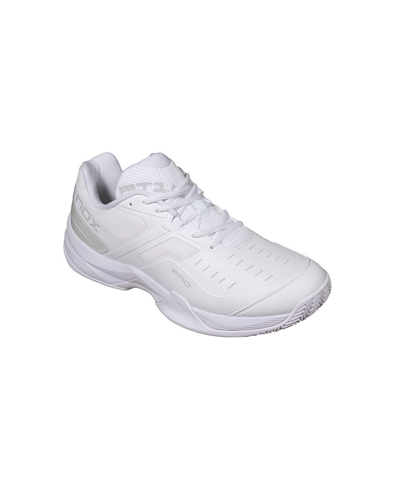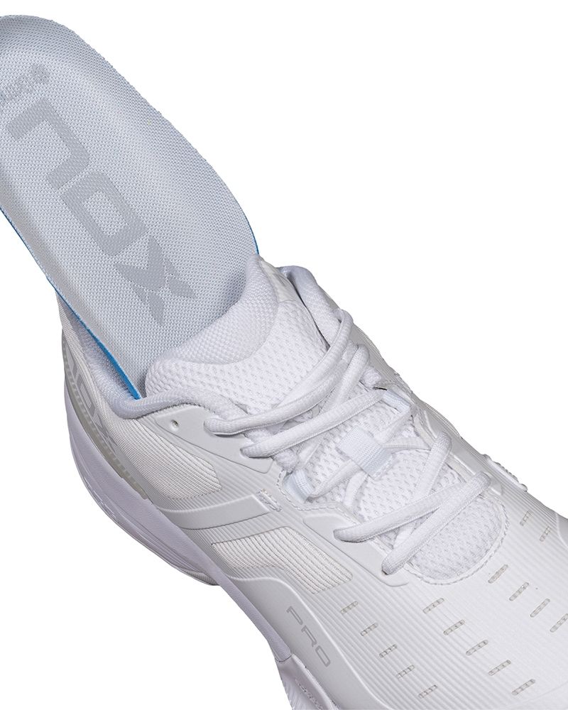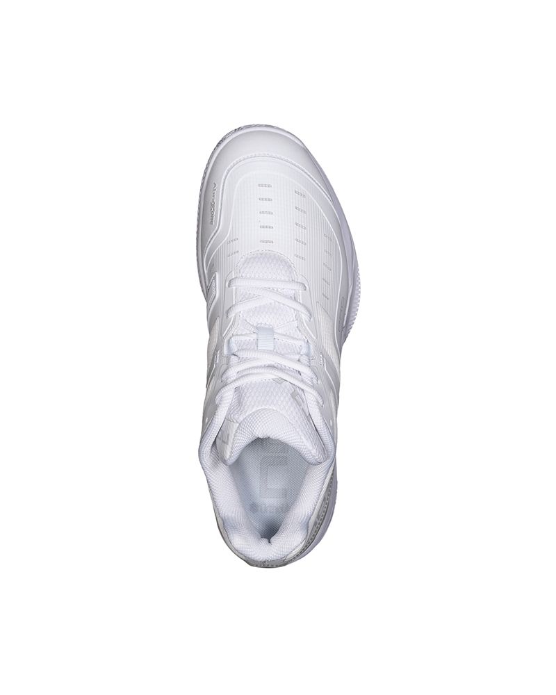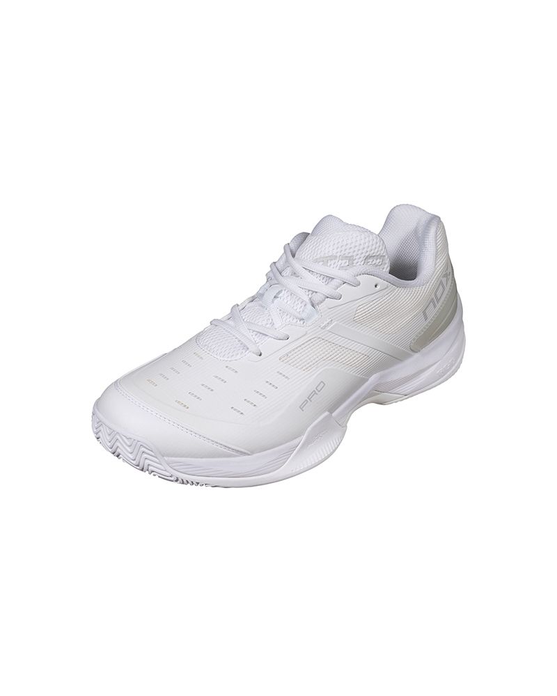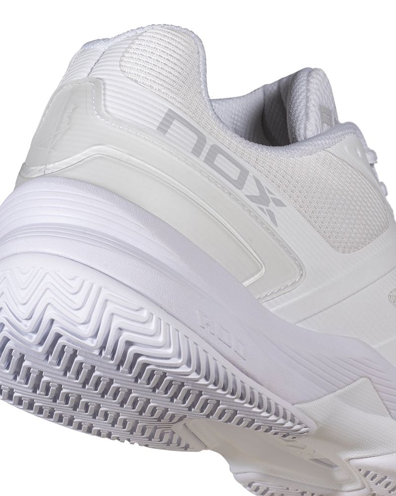 Le Nox At10 Pro Bianco/Grigio Unisex sono progettate per coloro che cercano una calzatura che supporti un ritmo di gioco intenso e movimenti costanti in campo. Il loro design incorpora tecnologie che ottimizzano la postura, la reattività e la leggerezza ad ogni passo. L'innovativa AGG (Advanced Gravity Geometry) eleva il tallone per facilitare partenze più potenti e una posizione iniziale più comoda, riducendo il carico muscolare.