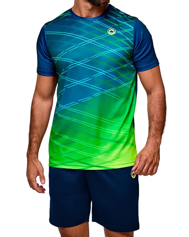 Realizzato in 100% poliestere, questo set utilizza tessuti leggeri che facilitano il movimento, permettendo di svolgere qualsiasi attività fisica con totale libertà. La parte posteriore della T-shirt è traspirante, migliorando la ventilazione e mantenendo una sensazione di freschezza anche durante allenamenti intensi. Inoltre, incorpora tecnologie tessili avanzate che ottimizzano l'esperienza sportiva: ADAPTEX fornisce flessibilità e adattabilità, DRY GEAR assicura una rapida eliminazione del sudore, e SINCRONIC mantiene il tessuto libero da pieghe e deformazioni.
