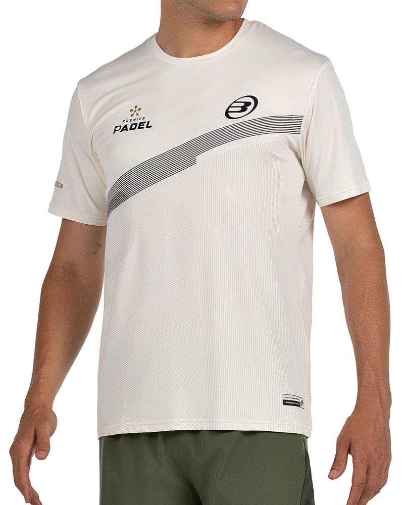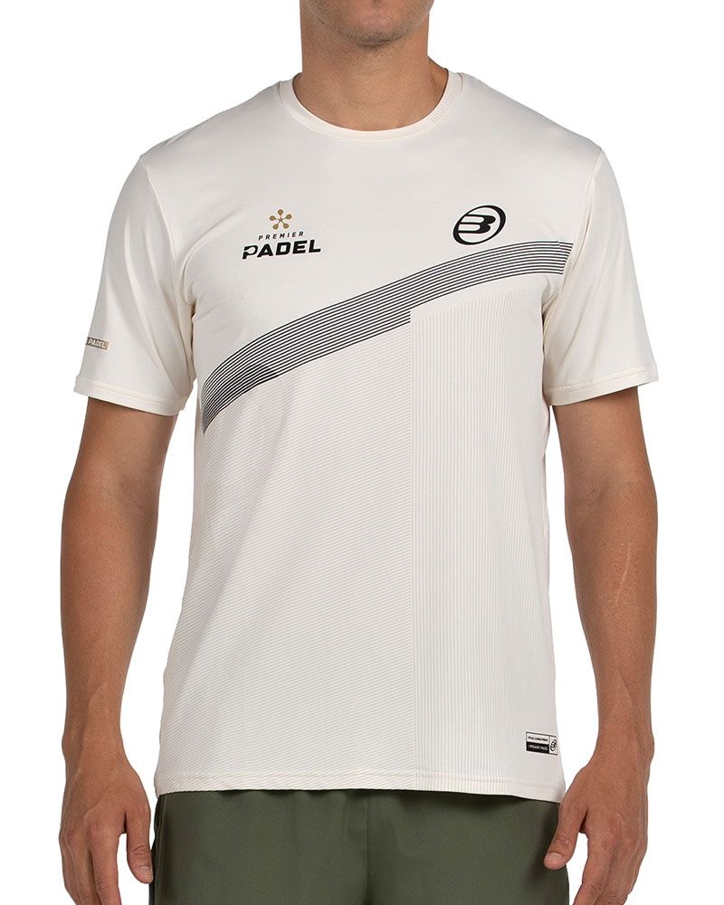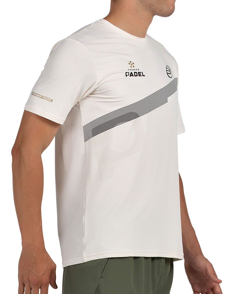 Il suo design include una parte posteriore in rete elastica che migliora la ventilazione nei momenti più intensi, assicurando che tu rimanga fresco e comodo. Inoltre, presenta un grafico personalizzato sul davanti e dettagli ufficiali di Premier Padel, aggiungendo un tocco unico e professionale.