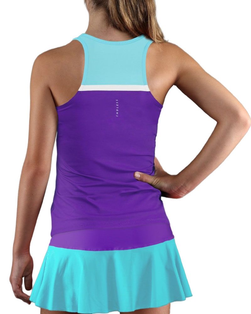 Il design di questo capo combina un colletto chiuso elegante e femminile con una schiena in tulle semi-trasparente, apportando un tocco moderno e distintivo. Il suo stile sportivo e contemporaneo favorisce la libertà di movimento in ogni colpo.