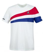 Questa maglia Le coq Sportif sfoggia un design moderno in bianco con blu che ti farà risaltare in importanti partite di paddle.