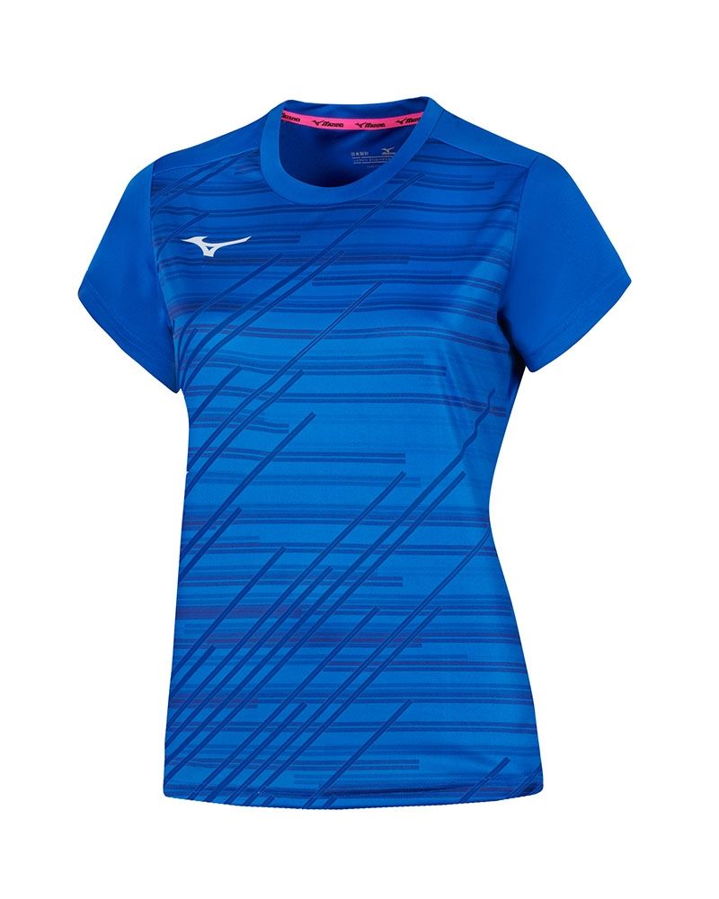 Muoviti con totale libertà e Confort con questa T-shirt Mizuno da donna realizzata in tessuto di poliestere, con design a maniche corte e collo rotondo.