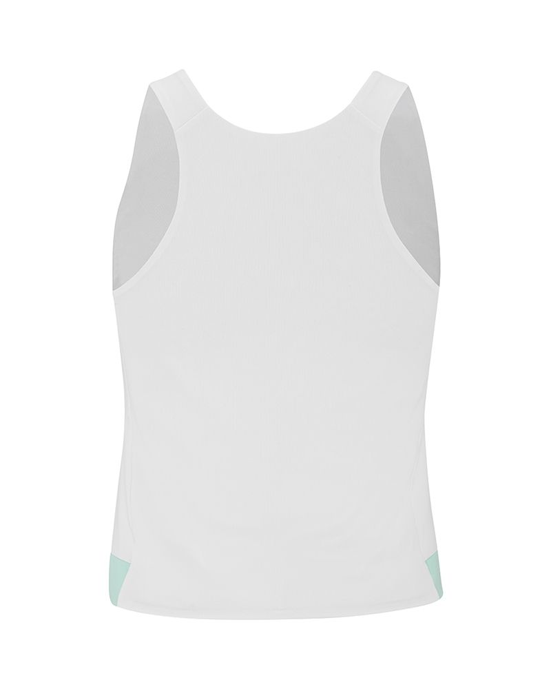 Il design include uno scollo rotondo e ampie aperture per le braccia, migliorando la ventilazione e permettendo una mobilità ottimale del braccio, potenziando ogni colpo. Realizzato in poliestere riciclato ed elastan, questo top non è solo traspirante e resistente, ma riflette anche un impegno verso l'ambiente. Se cerchi un capo che combini comfort, leggerezza e un design distintivo, questo tank top è la tua compagna ideale in campo.