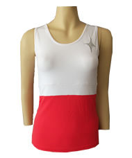 Camiseta sin mangas de color rojo y blanco.