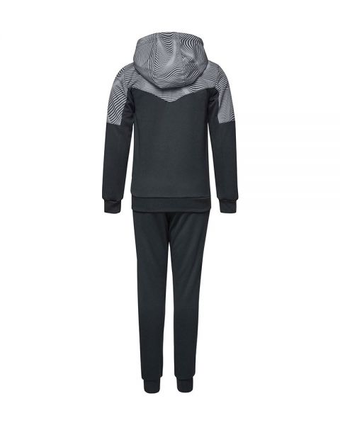La giacca è dotata di chiusura full-zip e cappuccio regolabile , adattandosi alle esigenze dei giovani atleti. I pantaloni lunghi, in blu navy, hanno polsini alla caviglia per una vestibilità perfetta e libertà di movimento.