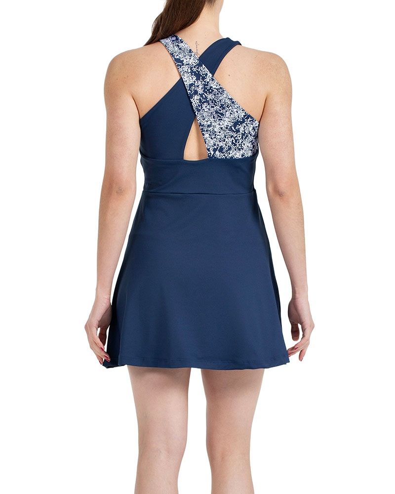 Questo design presenta spalline incrociate sulla schiena, creando un'apertura sottile che aggiunge un tocco di dinamismo e femminilità. Una delle spalline si distingue con una stampa unica, che si riflette anche nella rete interna, fornendo un'attrattiva visiva e un supporto aggiuntivo durante il gioco.