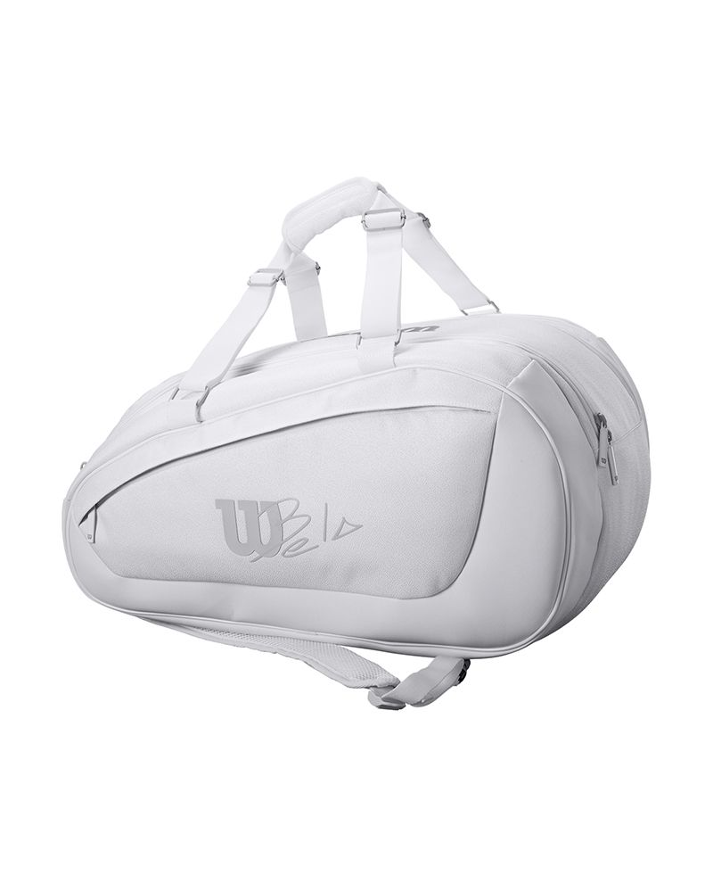 Progettata per contenere tutto il necessario per una partita importante, la borsa per racchette Wilson Bela Super Tour Padel White della collezione del giocatore Fernando Belasteguín è l'opzione ideale grazie al suo materiale estremamente resistente .
