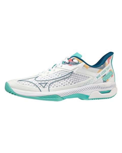 MIZUNO WAVE EXCEED TOUR 5 ALL COURT BLANCO TURQUESA MUJER, LIGERAS Y RESISTENTES