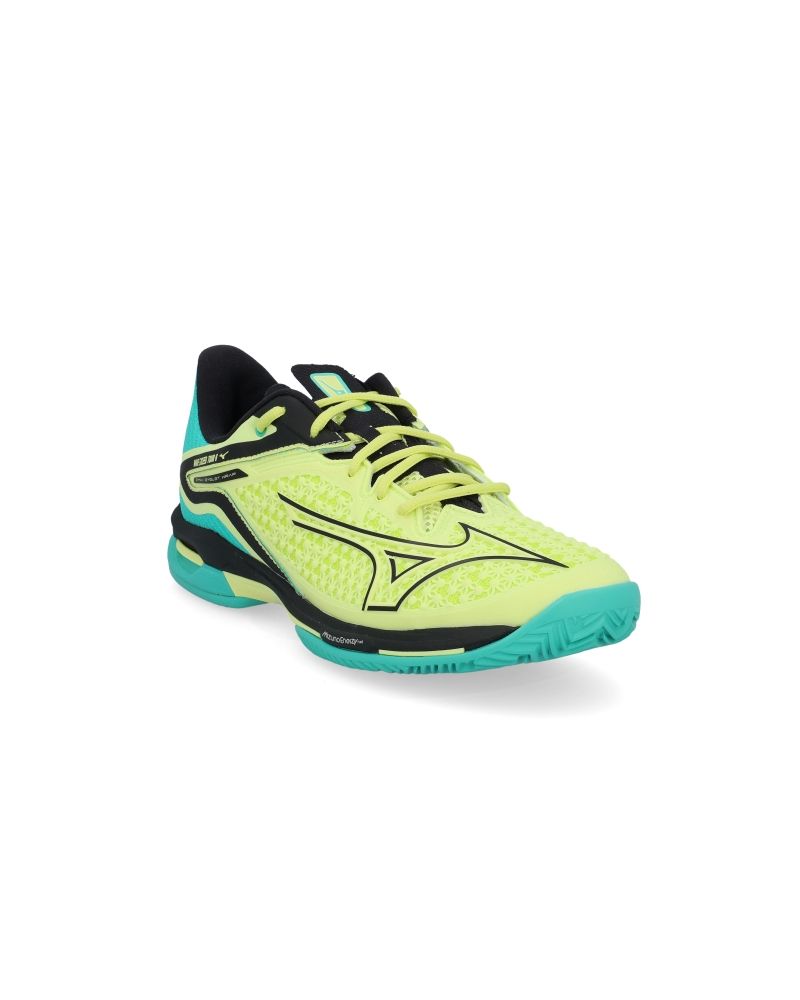 Diseñadas para jugadores de pádel exigentes que buscan dinamismo y estabilidad en sus jugadas, las zapatillas de pádel Wave Exceed Tour 6 CC en color lima de Mizuno brindan un rendimiento excepcional en todo tipo de superficies gracias a su suela con surcos flexibles.