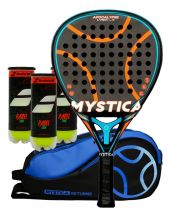 Si quieres conseguir un buen equipo para jugar al pádel y al mejor precio del mercado tienes que hacerte con un pack Mystica. Con un diseño atractivo e innovador, los packs para pádel Mystica incorporan tres botes de bolas de la marca Babolat, un paletero y una pala Mystica.