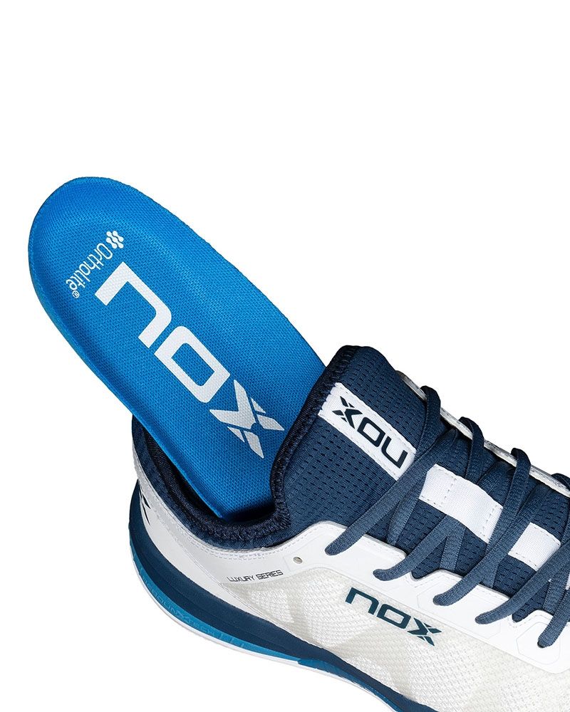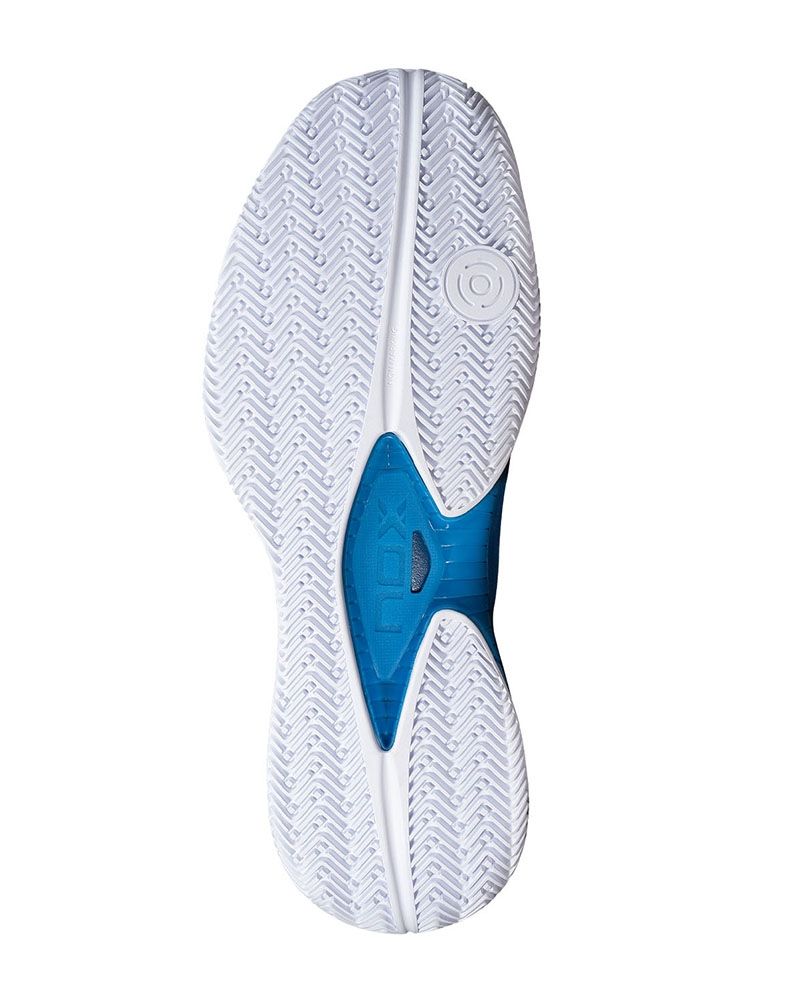 Diseñadas para jugadores de pádel profesionales, las zapatillas Nerbo 2024 de Nox en color blanco y azul son el modelo oficial del Premier Padel España 2024, sinónimo de garantía y alto rendimiento. Su suela mixta brinda versatilidad, capacidad de adaptación y agarre superior en todo tipo de superficies.