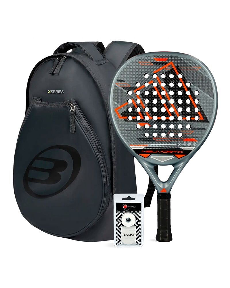 Adquiere este conjunto exclusivo y experimenta el placer de jugar con una Pala de alto nivel mientras disfrutas del estilo y la practicidad de una Mochila Bullpadel. control, potencia y elegancia en un solo conjunto.