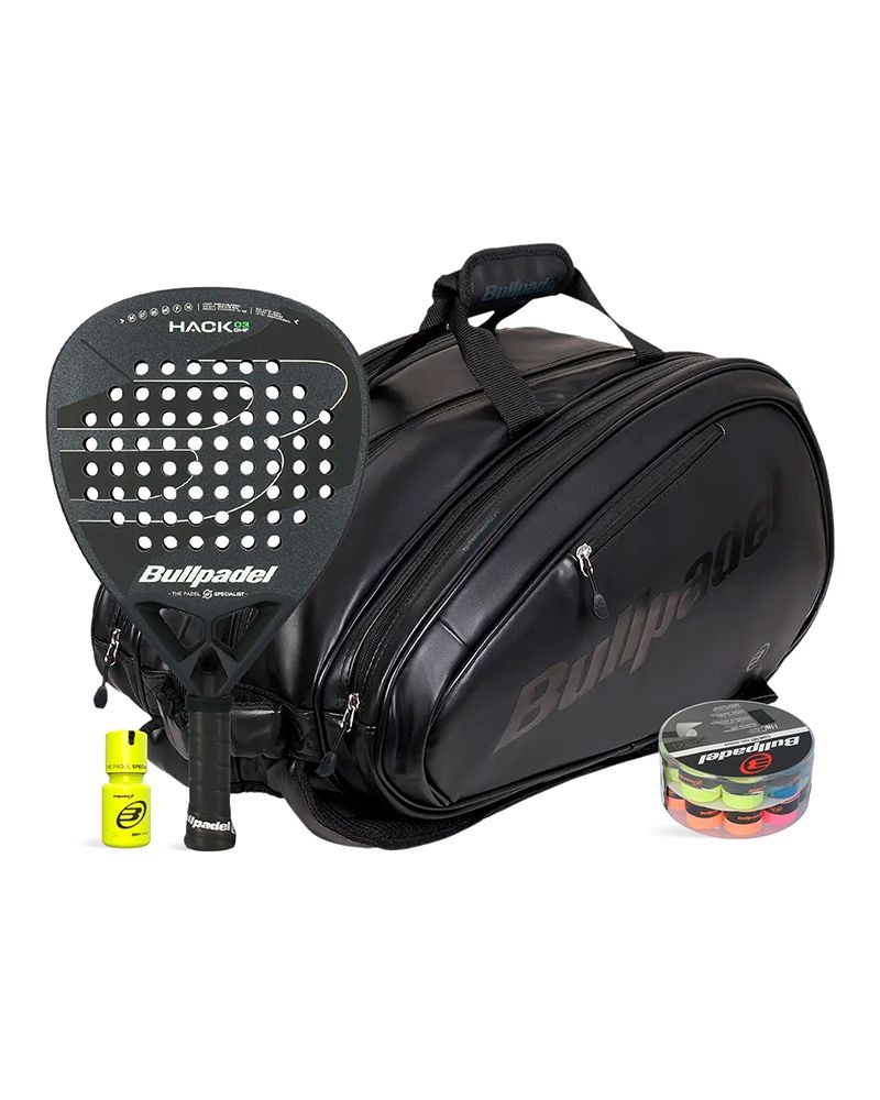 Consigue este pack Bullpadel en Street Padel y combina potencia, confort y control con la Bullpadel Hack 03 Comfort X-series, el Paletero Avant Negro y los accesorios Bullpadel.