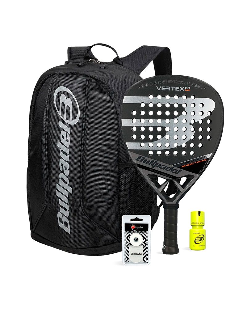 Este conjunto de Bullpadel Vertex 03 CMF con Mochila Avant 2 Dry Grip incluye: