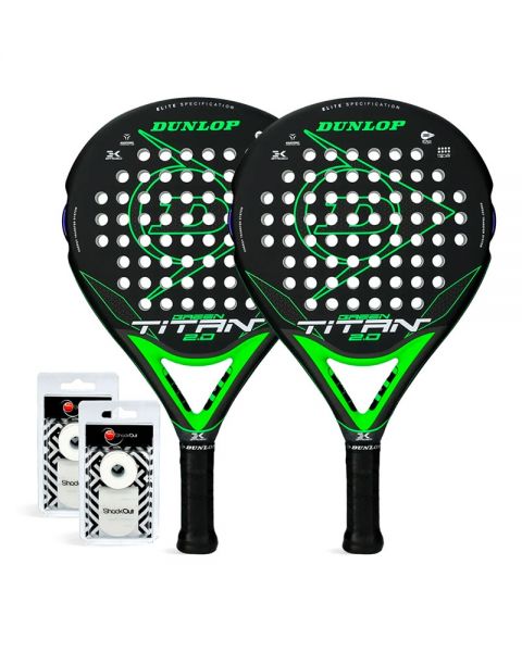 El Pack Dunlop Dúo Titan Verde 2 incluye dos palas y dos protectores Shockout. Las palas de Dunlop contienen un formato híbrido, que permiten un equilibrio entre potencia y control para aquellos jugadores enfocados en un gran rendimiento tanto presente como futuro.