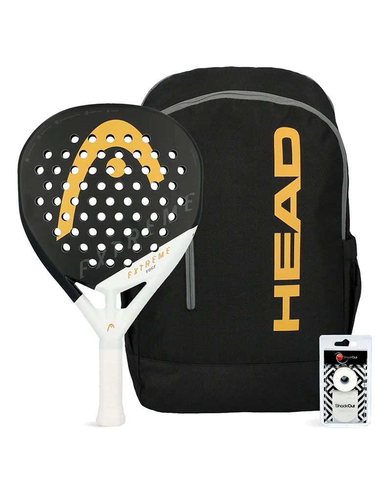 Este pack de pádel de Head te ofrece todo lo necesario para estar listo en la pista: la Pala Head Extreme Edge Black, la Mochila oficial Head Edge y el Protector con overgrip Shockout.