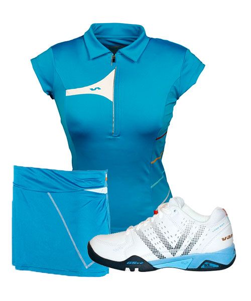 PACK VARLION ZAPATILLAS V-PRO MAX S13 BLANCO, FALDA MD12S08 AZUL Y POLO MD13W02 TURQUESA