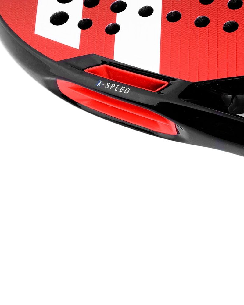 La Curva Speed está pensada para aquellos jugadores competitivos que desean dominar la trayectoria de la bola. Su secreto radica en su capacidad para facilitar el "ángulo negativo", una trayectoria descendente que minimiza el bote y marca la diferencia en el juego. La tecnología X-Speed potencia este efecto mediante dos perforaciones que conectan los laterales del Marco con la Cara, creando túneles de ventilación que mejoran la aerodinámica y permiten una aceleración máxima. Esto se traduce en golpes más tensos, rápidos y con un rebote más bajo.
