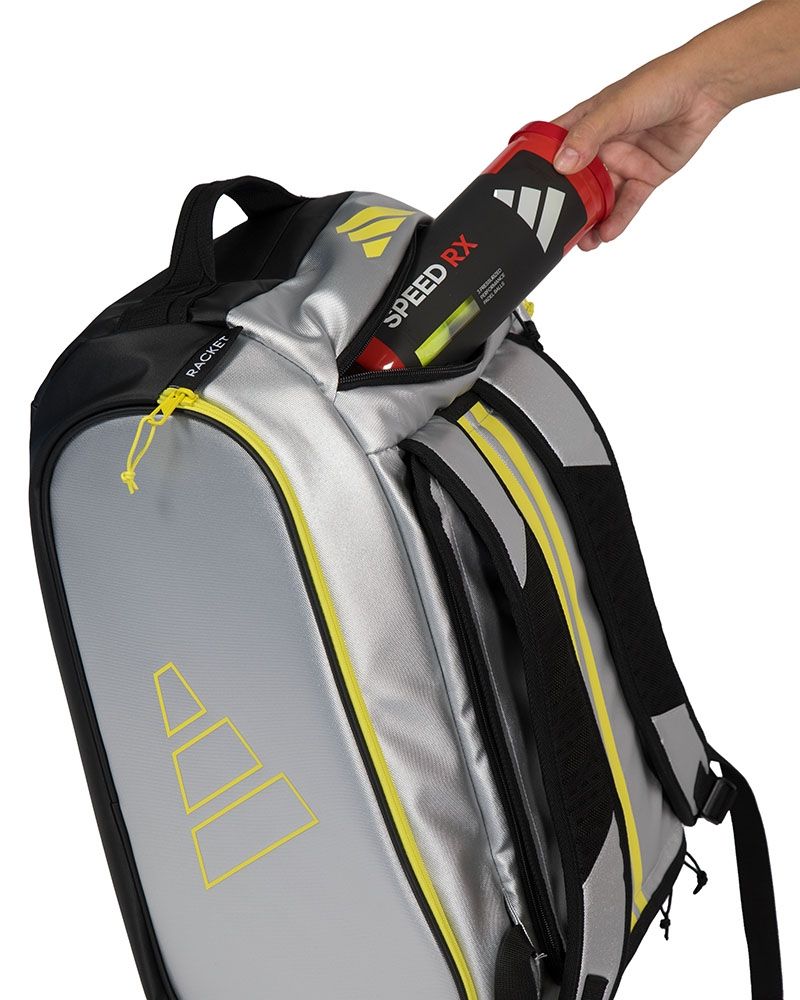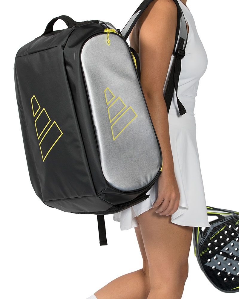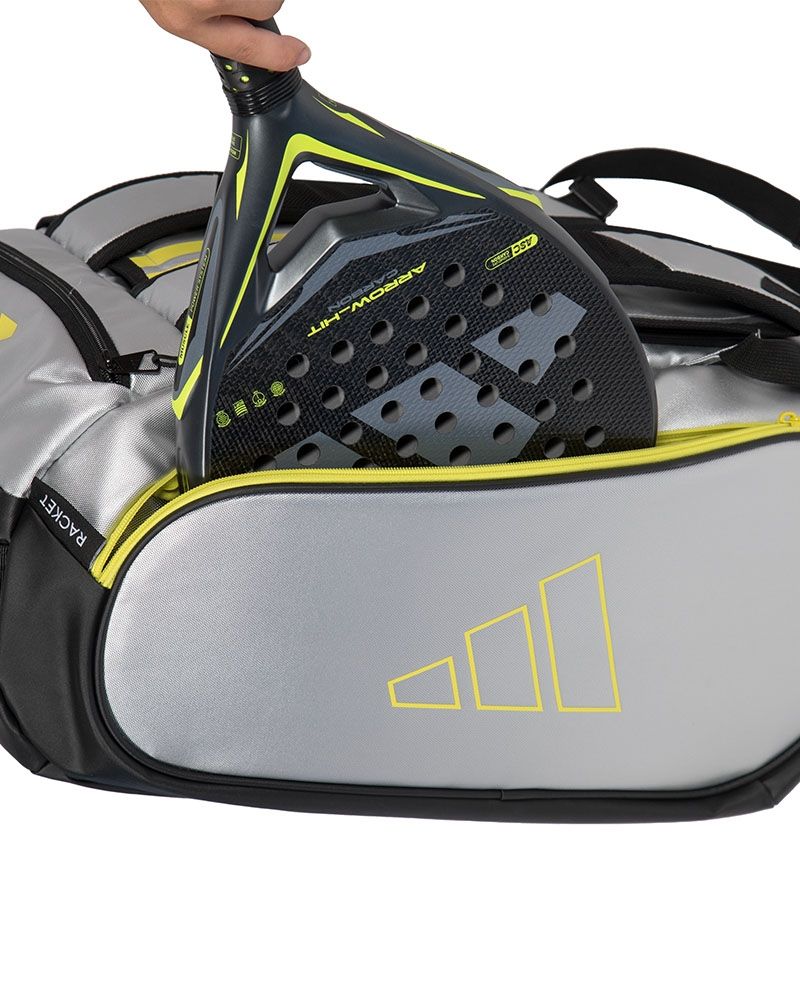 El Paletero Tour Silver de Adidas 2026 se presenta con un diseño completamente renovado, pensado para jugadores de nivel intermedio y avanzado que buscan transportar su equipo de manera ordenada y segura.