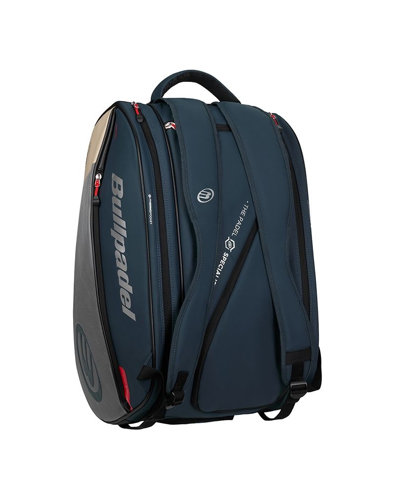 Este Paletero de Bullpadel, modelo Neuron en Gris Oscuro, es una pieza exclusiva que se distingue por su diseño único, firmado por Fede Chingotto, una de las figuras más destacadas del pádel actual. Su apariencia elegante y sobria, combinada con una funcionalidad excepcional, lo convierte en un accesorio esencial para aquellos jugadores que valoran el espacio, la organización y la calidad premium. Confeccionado en nylon dobby y neopreno, garantiza resistencia, durabilidad y un acabado contemporáneo.
