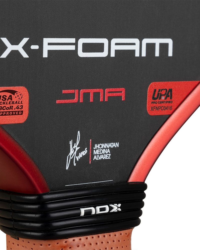La Pickleball Nox X-Foam JMA 16mm, avalada por Jhonnatan Medina Álvarez, es el resultado de una colaboración con este experto del juego estratégico. Diseñada para quienes ven el pickleball como un ajedrez dinámico, esta pala destaca por su equilibrio y versatilidad, fusionando potencia y control para adaptarse a cualquier desafío en la pista.