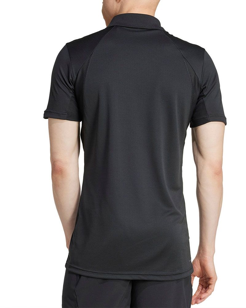 La sencillez es tu gran aliada. Colores simples: y planos como el negro que lo aborda totalmente, y blanco en el logotipo componen este polo de la compañía germana Adidas.