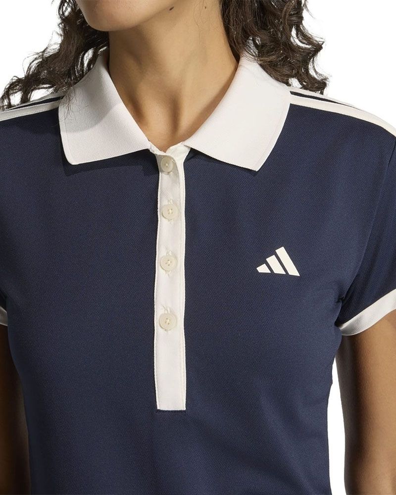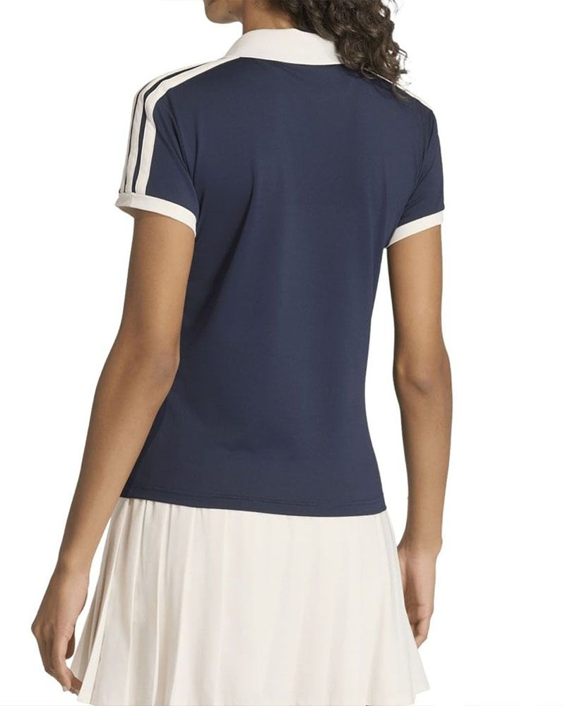 El Polo Adidas Heritage Mujer fusiona la sofisticación del tenis clásico con las exigencias del pádel contemporáneo. Su diseño entallado no solo resalta la figura, sino que también ofrece un estilo refinado tanto dentro como fuera de la cancha.