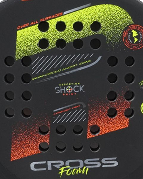 La Super Cross ofrece un juego polivalente con buen control y potencia. Presenta un marco de fibra de vidrio reforzado con carbono y planos 100% fibra de vidrio. Su núcleo está compuesto de polietileno, material absorbente que reduce las vibraciones y proporciona buena salida de bola.