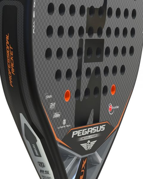 Tu nueva pala de padel SIUX PEGASUS REVOLUTION 3K, tiene implementado un refuerzo de fibra de vidrio en las caras de carbono para brindarte una resistencia de lujo además, tiene un bitubular de carbono para cero abolladuras o ralladuras.