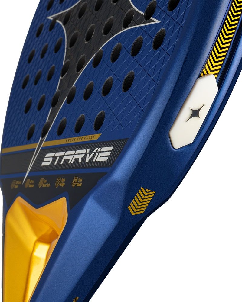 La Starvie Drax+ es una Pala de pádel en forma de lágrima, ideal para jugadores de nivel intermedio que buscan un juego adaptable, capaz de ofrecer tanto Control como Potencia según lo requiera cada situación. Su diseño equilibrado la convierte en la opción perfecta para quienes desean mejorar su rendimiento en la pista con una Pala que se adapta a todas las fases del juego.