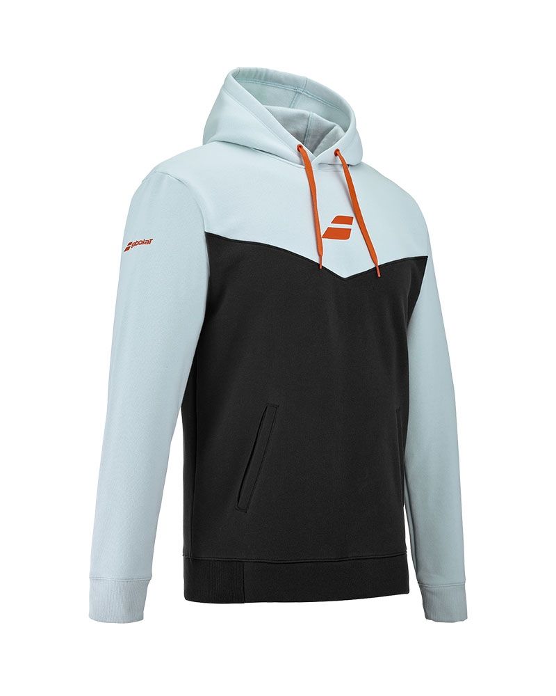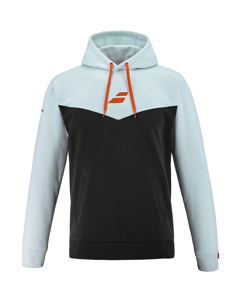 Cuenta con una capucha que ofrece protección adicional y un bolsillo delantero tipo canguro, ideal para guardar pequeños objetos. El logo de Babolat en el frente central aporta un toque contemporáneo que captura la esencia del pádel y el espíritu deportivo.