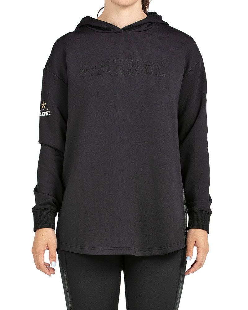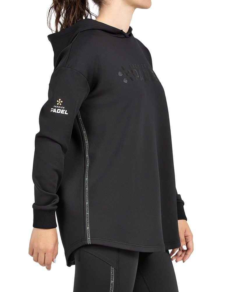 La sudadera Bullpadel Paitt para mujer, parte de la colección Premier Pádel, es ideal para jugadoras que buscan comodidad, rendimiento y un diseño moderno. Fabricada con tejido jacquard y un interior perchado, ofrece una sensación cálida y suave al contacto con la piel. Su corte holgado, con capucha y bajo redondeado, garantiza un ajuste cómodo que permite moverse con total libertad, ya sea durante los entrenamientos o en el día a día. Los detalles técnicos, como el gráfico de gel en la parte delantera y la banda personalizada en los laterales, añaden un toque único que subraya su funcionalidad.