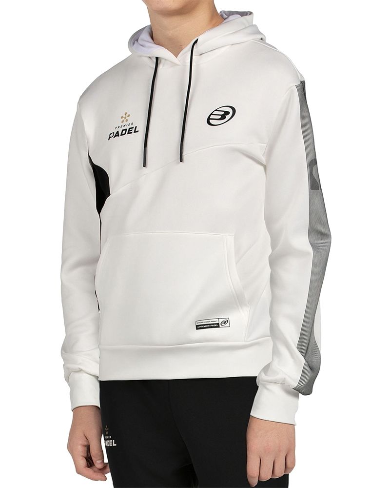 La Sudadera Palmiro Junior, que forma parte de la colección oficial Premier Padel está diseñada para niños y adolescentes que juegan al pádel regularmente, esta prenda ofrece comodidad, funcionalidad y un diseño moderno, ideal para entrenamientos, competiciones o para el día a día.