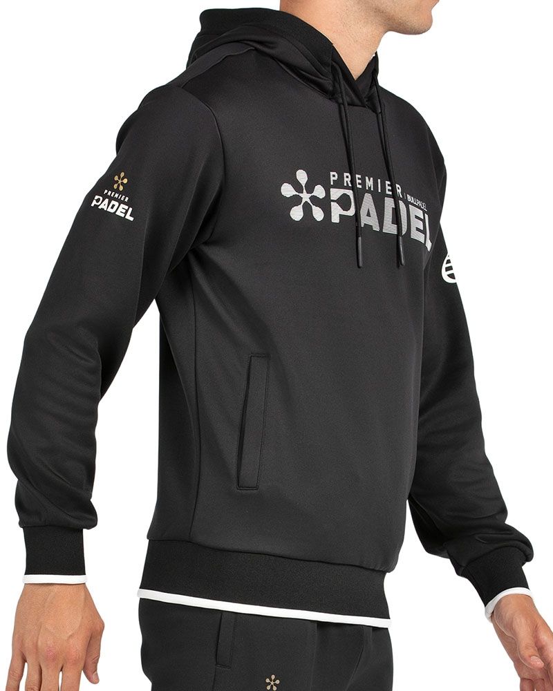 El diseño en gel en el pecho añade un toque único, mientras que los detalles en canalé y la capucha decorada refuerzan su estilo deportivo. Es una opción versátil, perfecta para tus entrenamientos o para el uso diario, que se distingue por su confort y su estilo inigualable. Además, lleva los gráficos oficiales de Premier Pádel, un sello de autenticidad y pasión por el pádel.