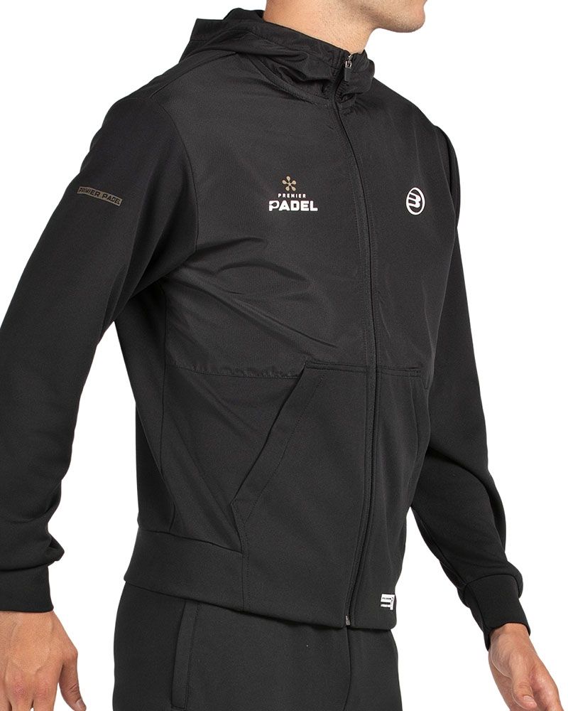 Los paneles con textura ottoman, junto con el gráfico en la capucha y los emblemas oficiales de Premier Padel, le otorgan un acabado premium y refuerzan su esencia deportiva. Además, cuenta con bolsillos laterales con cremallera para que puedas guardar tus pertenencias de manera segura.