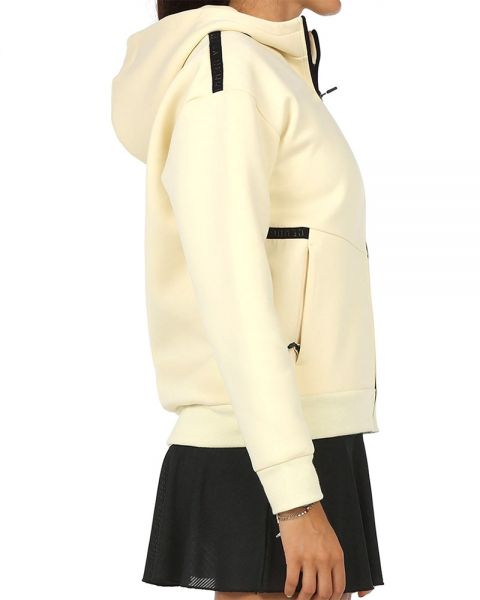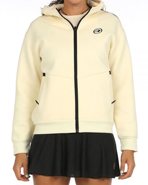 Sudadera Bullpadel Yesca en color crudo para mujer. Su tejido ligero la hace transpirable manteniendo la temperatura ideal en tu cuerpo.