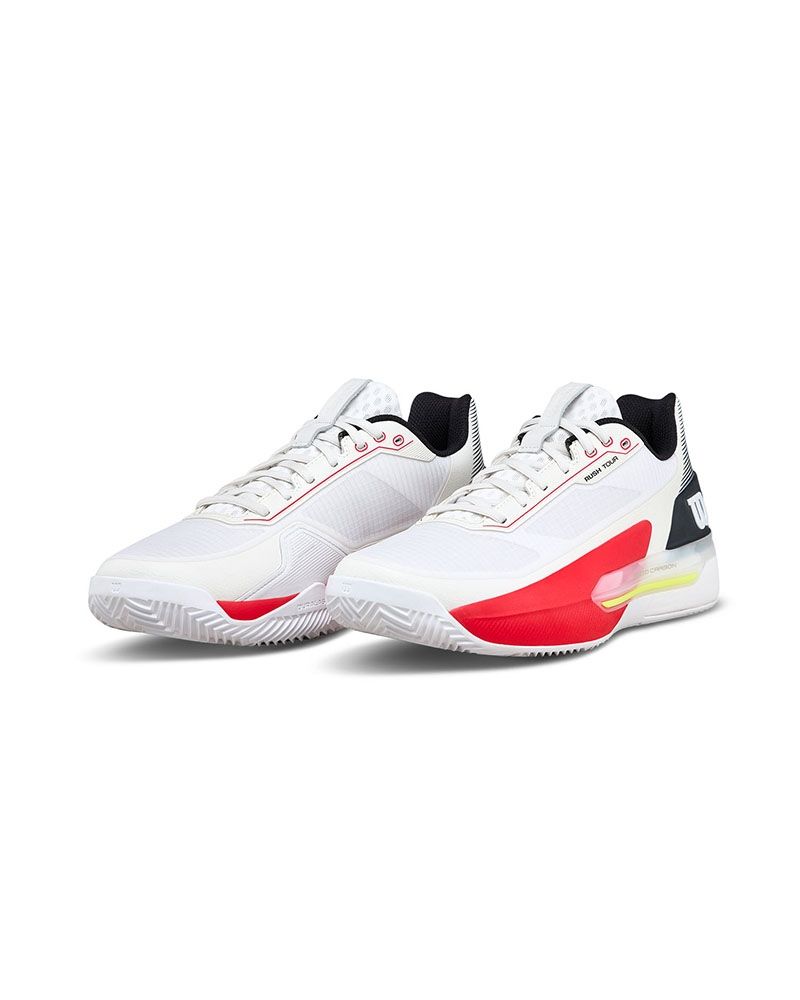 Las Wilson Rush Tour 5 Clay Blanco/Rojo son la opción perfecta para quienes buscan tecnología de vanguardia y prestaciones profesionales en pistas de tierra batida. En Street Padel podrás encontrar este modelo diseñado para maximizar tu rendimiento en cada punto. No pierdas la oportunidad de mejorar tu estabilidad, velocidad y confianza en la pista con unas zapatillas creadas para la competición más exigente.