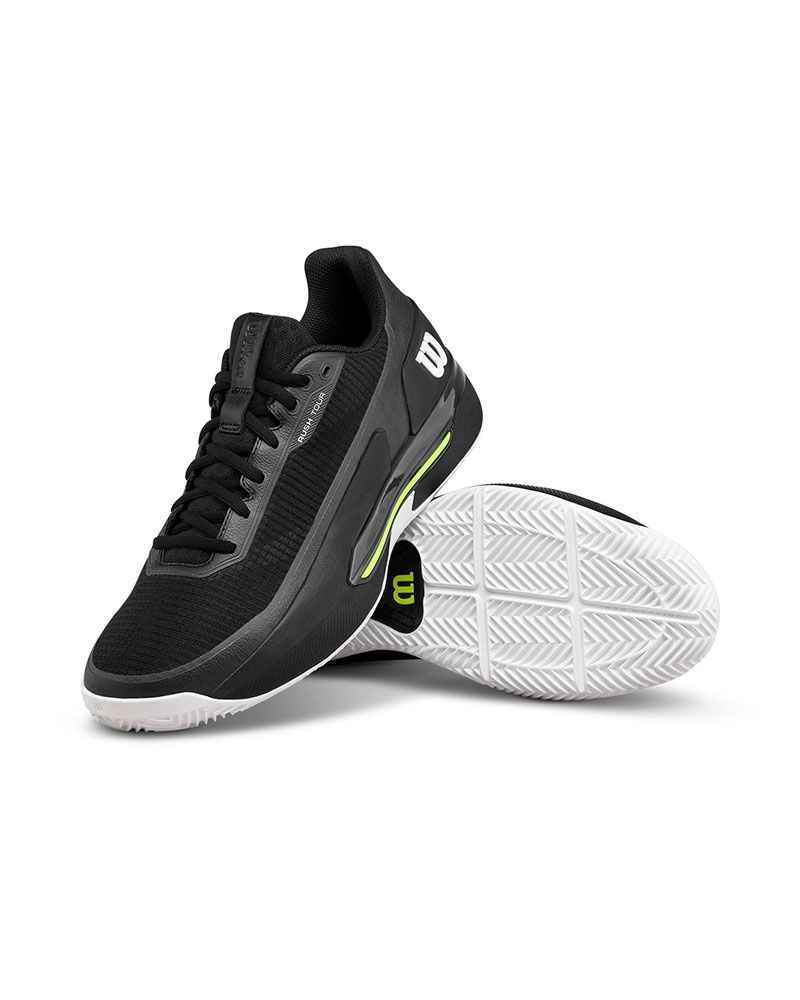 Si buscas un calzado que combine rendimiento excepcional con un diseño atrevido, las Wilson Rush Tour 5 Clay en Negro/Blanco/Amarillo son tu mejor opción. Su paleta de colores vibrantes y modernos aporta un toque de energía y dinamismo a tu juego en la cancha.