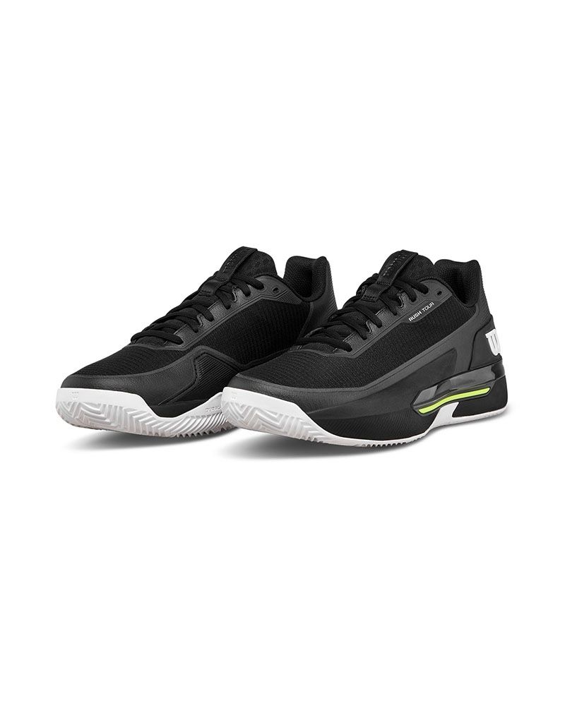 No dejes pasar la oportunidad de elevar tu juego con las Wilson Rush Tour 5 Clay Negro/Blanco/Amarillo. Este calzado te brinda tecnología avanzada, estabilidad y un diseño innovador. ¡Juega con estilo y distinción!