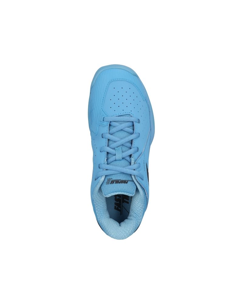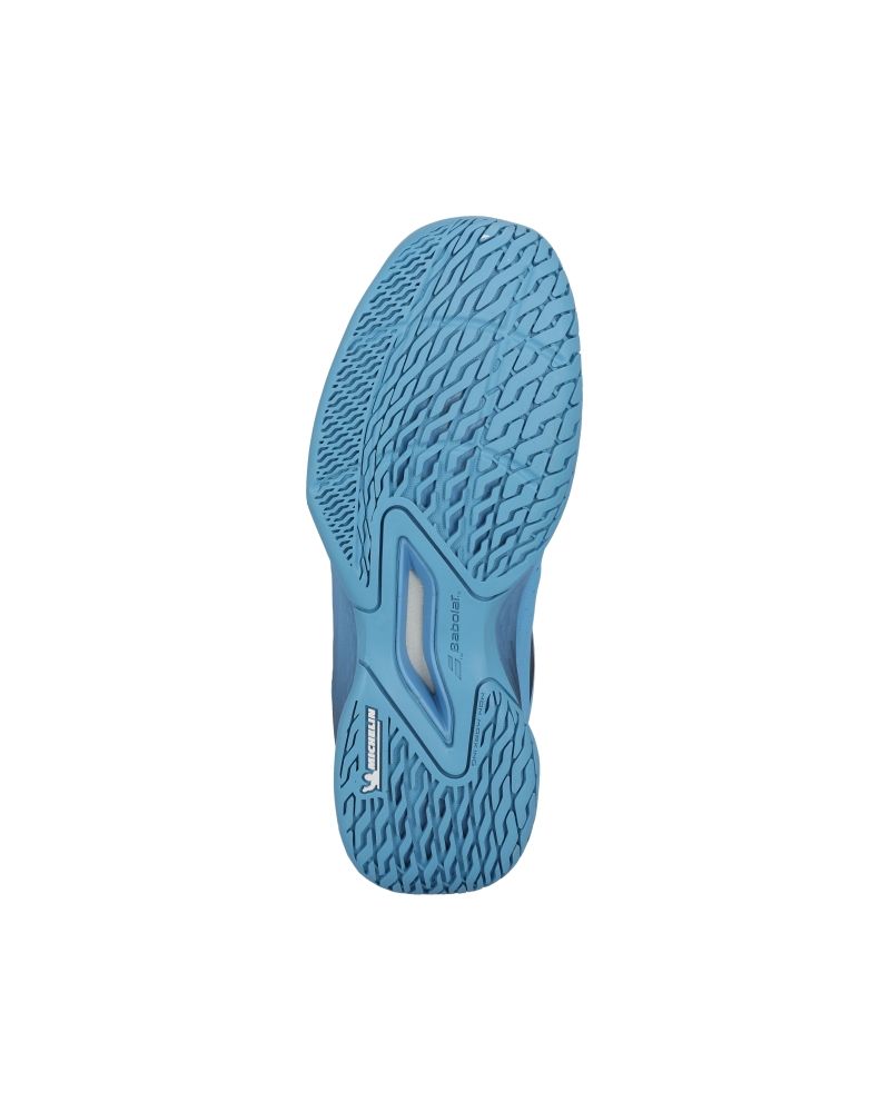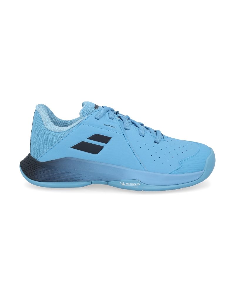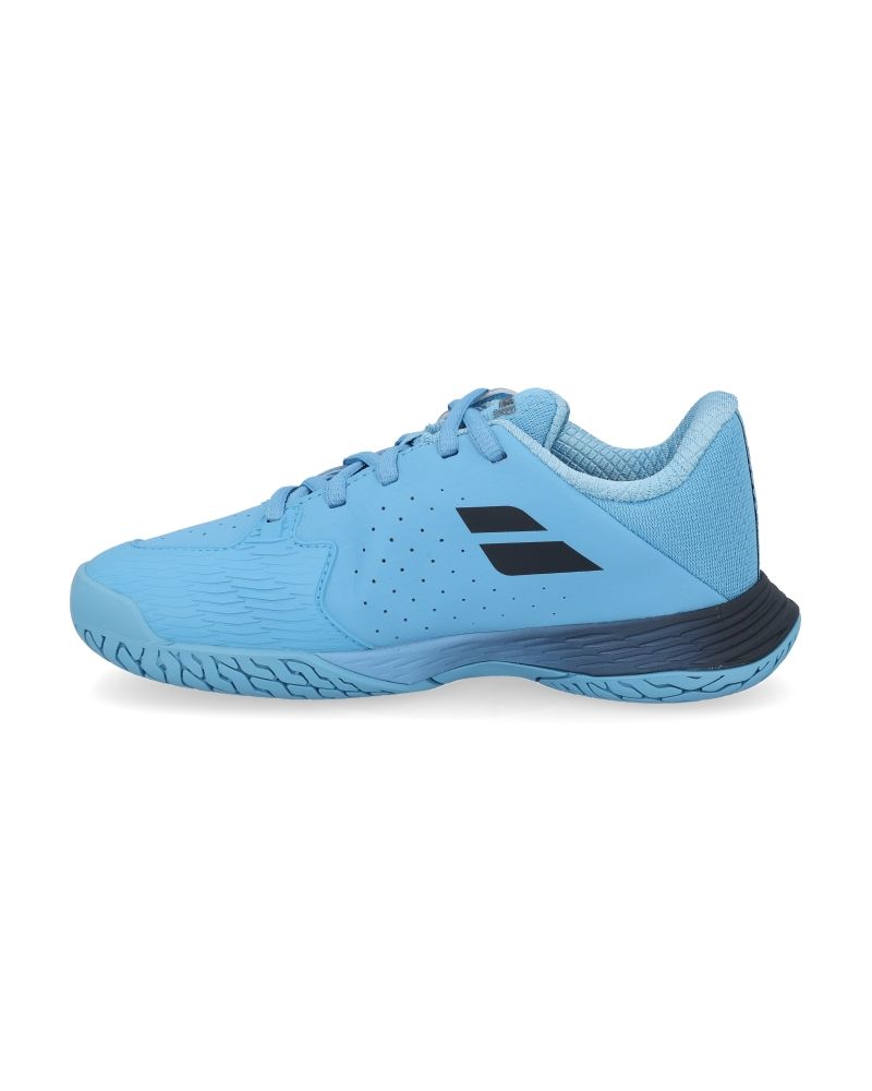 Estas zapatillas Babolat para niño especializadas para deportes de pista con arena o tierra destacan por su perfil bajo, su color azul cielo que le dan un toque sencillo pero elegante, así como por tener unas perforaciones en la zona del empeine que ayudan a transpirar la humedad del pie.