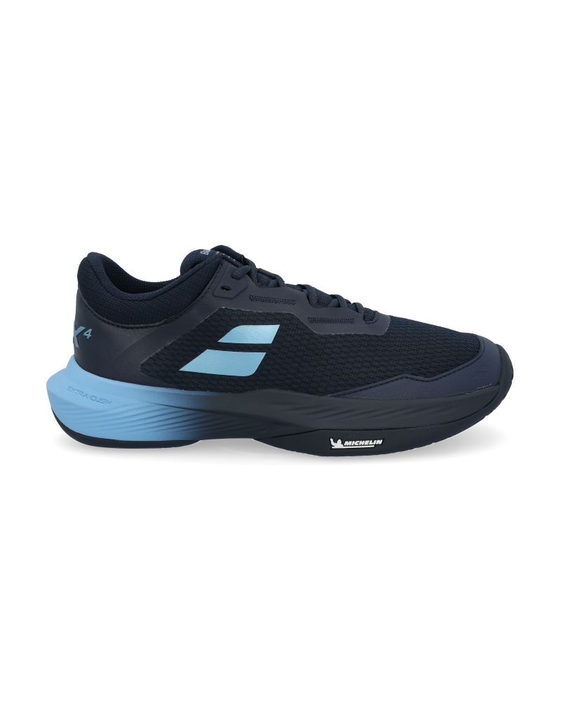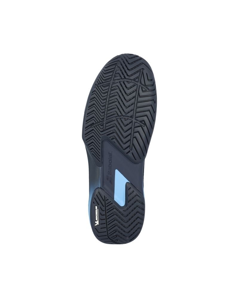 Estas zapatillas para adultos especializadas para deportes de pista con arena o tierra del fabricante Babolat destacan por su perfil bajo, su color azul marino y tonos azul cielo y negro en la suela que le dan un toque sencillo pero elegante, así como por tener unas perforaciones en la zona del empeine que ayudan a transpirar la humedad del pie.